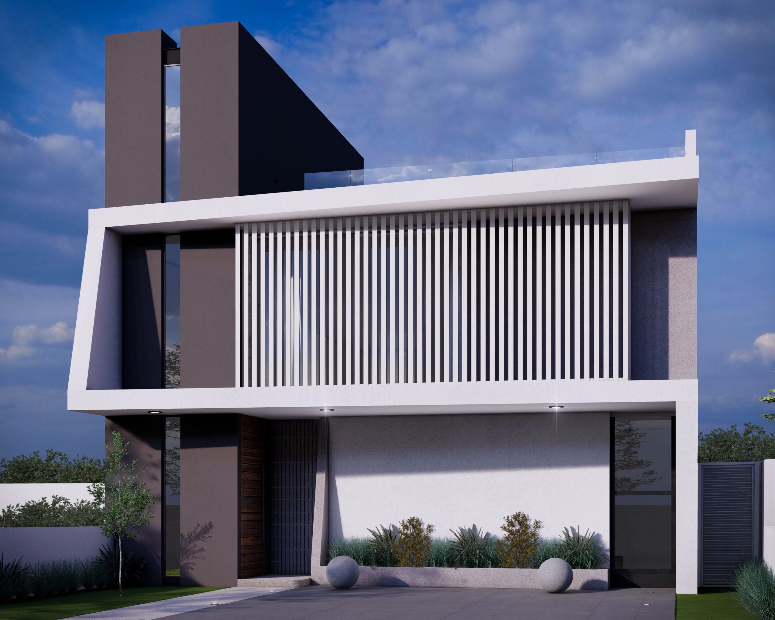 Este proyecto destaca por su enfoque arquitectónico de estilo deconstructivista, donde las líneas angulares y los volúmenes desfasados aportan dinamismo y personalidad a la composición.